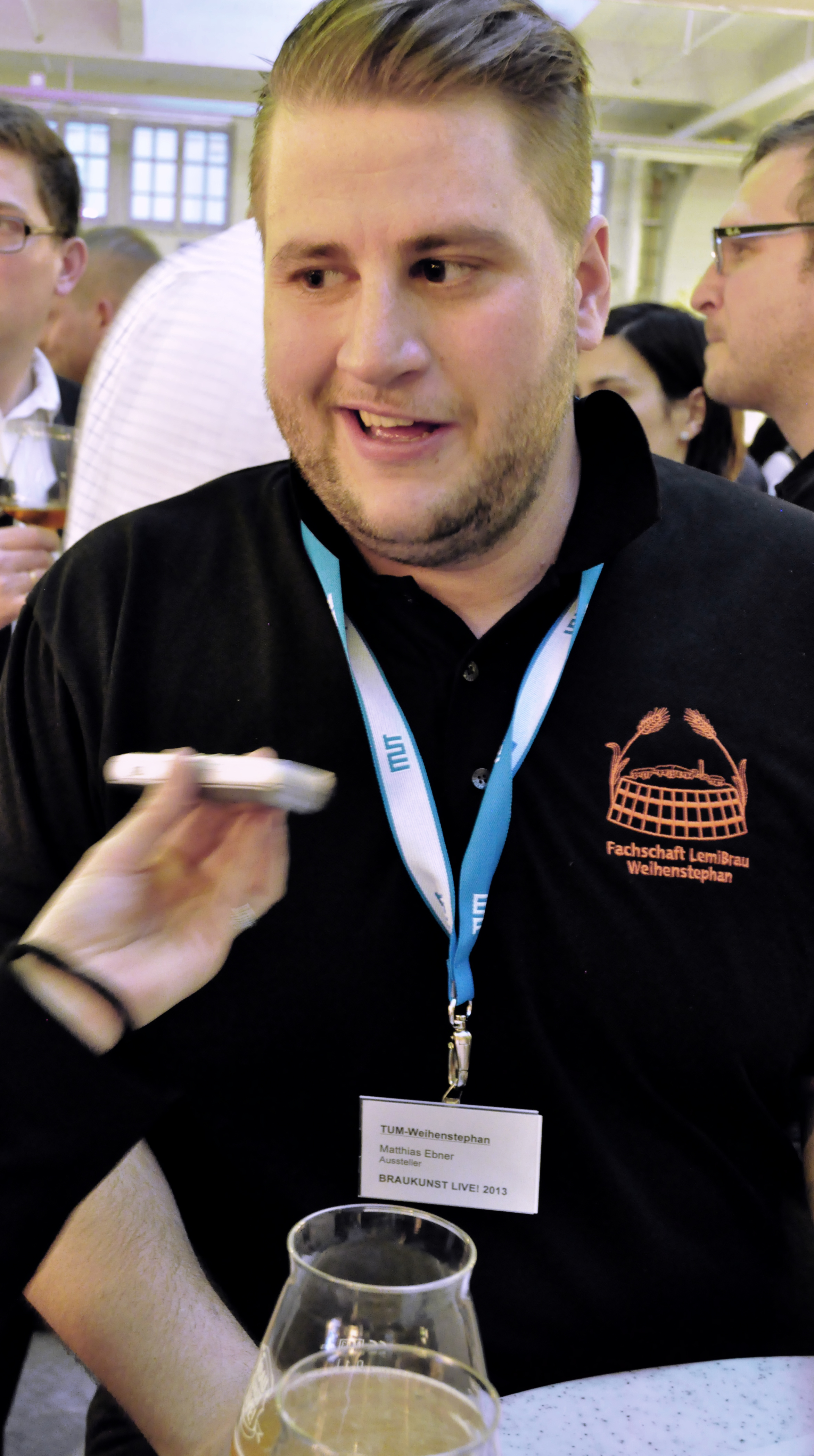 Ein paar Meter weiter läuft mir Matthias Stephan Ebner von der Technischen Universität München in Weihenstephan über den Weg. Er nimmt mich gleich mit zum Stand und schenkt mir das „Rötling“ der Studenten des Innovationswettbewerbs ein. Ein Red-Ale mit knapp sechs Prozent Alkohol. Matthias erzählt mir von dem Wettbewerb, bei dem die Brauwesen-Studenten ihre eigenen Biere brauen. Eine Jury entscheidet dann welches das Beste ist. So haben die Nachwuchsbrauer die Möglichkeit sich voll und ganz auszutoben und ihrer Kreativität freien Lauf zu lassen. „Der Edelbiertrend hat in den letzten Jahren brutal durchgeschlagen“, freut sich Matthias, „die Leute wollen fernab der Massenbiere wieder neue Geschmackserfahrungen sammeln. Das erlaubt uns verrückte Sachen zu machen.“ Erst vor ein paar Jahren hätten sich die Studenten getraut IPAs zu brauen. Natürlich nach deutschem Reinheitsgebot. „Die fünfte und wichtigste Zutat ist die Liebe zum Bier“, sagt Matthias und nimmt einen kräftigen Schluck aus seinem Glas.