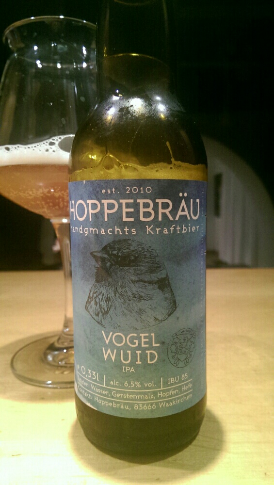 Zugegeben, ich mag Markus Hoppes Bezeichnungen für seine Biere: Wuide Hehna, Wuider Hund und jetzt Vogelwuid – echt bayerisch eben. Kein Wunder: Hoppebräu wird im oberbayerischen Waakirchen, in der Nähe des Tegernsees hergestellt. Dort wird noch richtig urbayerische gesprochen. Neben dem „Wuiden Hund“ probierte ich kürzlich sein India Pale Ale „Vogelwuid“ mit 6,5 Prozent Alkoholgehalt.