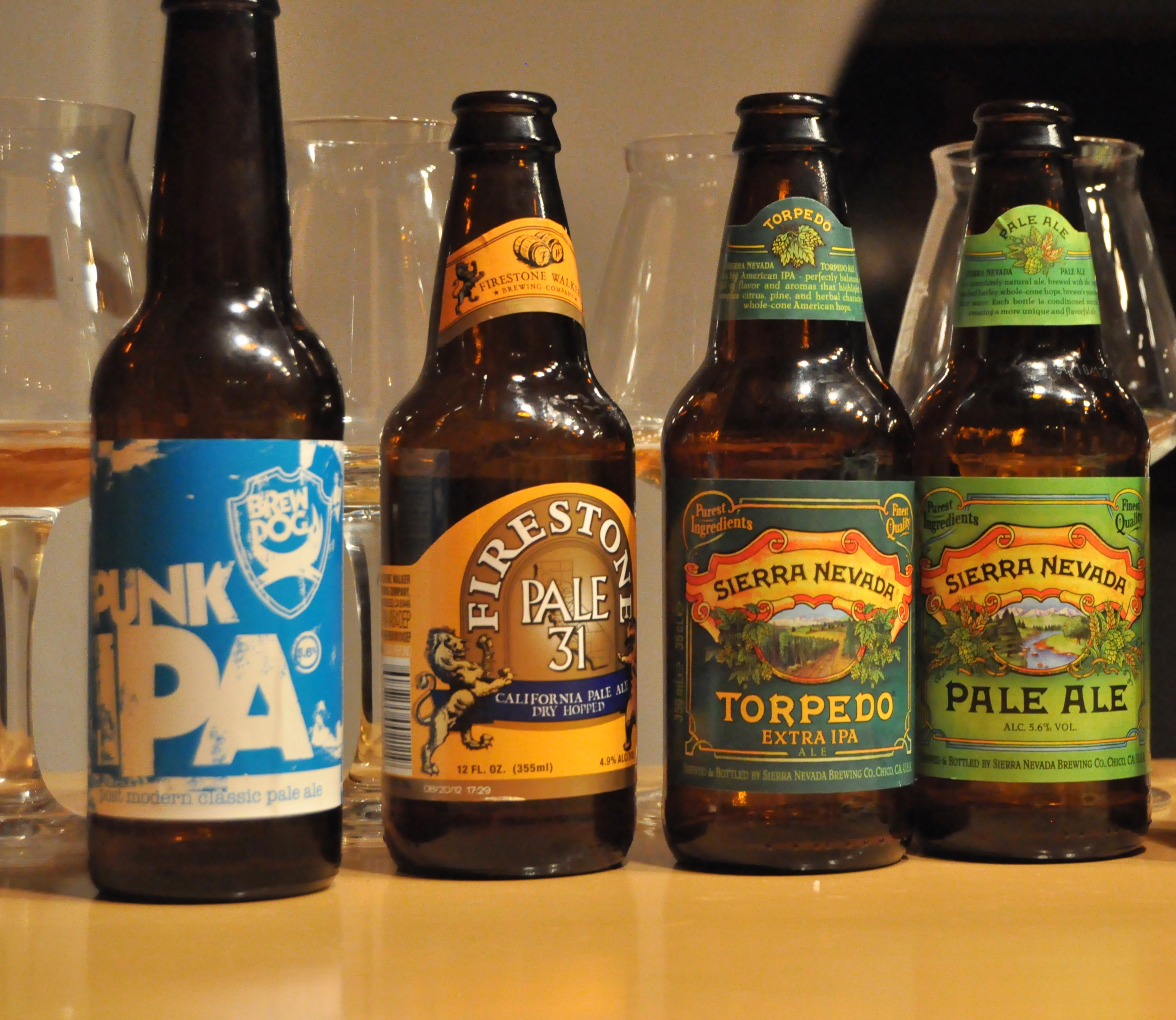 Es war einfach mal wieder Zeit für eine kleine Degustationsrunde. Also lud ich gestern ein paar Freundinnen ein, die noch wenig Erfahrung mit Craft-Bieren haben. Ich tischte ihnen eine Auswahl an feinen Bieren auf, um ein wenig Überzeugungsarbeit für moderne Kreativbiere zu leisten. Ich kenne alle vier Biere seit Jahren, probiere sie aber immer mal wieder, um zu testen, ob sich an der Qualität dieser international inzwischen bekannten Ales etwas verändert hat. Kritiker kann ich beruhigen: Die amerikanischen und schottischen Braumeister haben in einer ansonsten quirligen Branche das Niveau ihrer Biere – auch bei immens gestiegenen Ausstoß – gehalten.