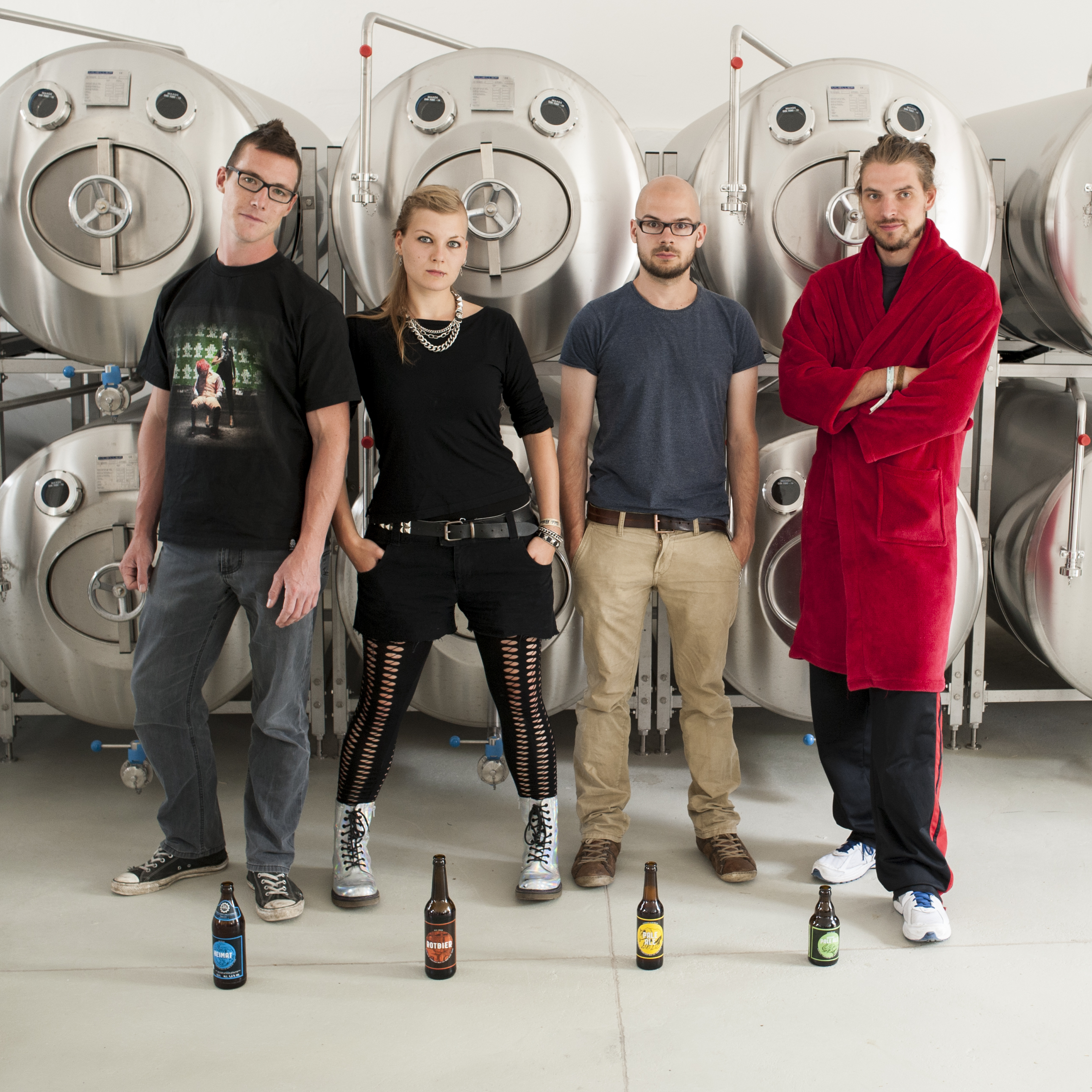 Vor gar nicht allzu langer Zeit waren die Abläufe noch etwas komplizierter. Anfangs brauten die Berliner mit Eimern in einer WG-Küche und zogen eigenen Hopfen auf Julians Balkon. Das Bier schmeckte und die Nachfrage im Freundes- und Bekanntenkreis wurde immer größer. Also musste mehr gebraut werden. Zunächst zog das Berliner Craft-Team als Gypsy-Brewer unter dem Kampfnamen „Beer4Wedding“ durch die Hauptstadt. Inzwischen werden in ihrem nagelneuen 1000-Liter-Sudhaus ein- bis zweimal die Woche die Sude im großen Stil gezaubert – mit einer Lagerungsmöglichkeit in zwölf liegenden Tanks.