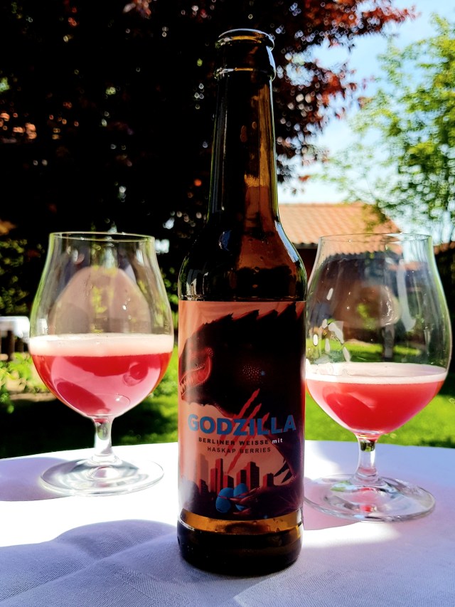 In den vergangenen Tagen stieg das Thermometer in diesem Jahr in Bayern erstmalig über 30 Grad. Was passt da besser, als eine leichte und vor allem erfrischende Berliner Weiße? Kürzlich öffnete ich mir das Sauerbier „Godzilla“ von Buddelship aus Hamburg. Für den besonderen Kick braute Simon Siemsglüß seinen 3,3-prozentigen Champagner des Nordens mit Haskap-Blaubeeren. Diese Früchte sind keine gewöhnlichen Blaubeeren, sondern werden als neues „Superfood“ gehandelt. Ihr Aroma erinnert an eine Mischung aus Heidelbeere, Brombeere und Himbeere.