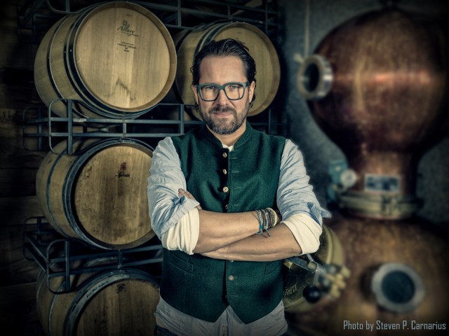 Auch Craft-Tausendsassa David Hertl hat den Trend zu härteren Drinks schnell ertastet. In seiner Braumanufaktur im fränkischen Schlüsselfeld begann er unlängst mit einem IPA-Brand und produziert jetzt auch einen Hopfen-Gin. Als Basis dient ein Bierdestillat, das mit mazeriertem Zitronengras, Wacholder, Hopfen und Malz versehen wird und sechs Wochen reift. Anschließend stopft Hertl den Gin noch mit den Hopfensorten Sorachi Ace und Mandarina Bavaria – so bekommt die Wacholder-Spirituose ein süßliches Aroma von Kokos und Orange. Aktuell entwirft er dazu noch ein passendes Hop-Tonic-Water. Aber warum macht er das Alles? „An der Brennblase mit unseren Rohstoffen zu spielen, ist im Leben eines Brauers einfach einen Riesenspaß“, jubiliert der quirlige Jungbrauer.