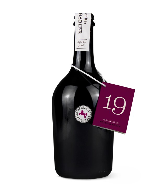 Magnus 19 wurde in reiner Handarbeit in der Riegele BierManufaktur gebraut und in edlen Kirschbrand-Fässern ausgebaut. Diese besondere Lagerung bringt eine ruhige Perlage und weinige Holznuancen mit sich. Kräftig geröstete Malze sorgen für eine tiefdunkle Farbe und ein dominierendes Aroma von Bitterschokolade, abgerundet durch feine Kaffee- sowie Barrique-Noten und perfekt ergänzt durch die Veredelung mit süßer Rubin-Kirsche. Die 11Prozent Alkohol des Magnus 19 entfalten ihr volles Aroma am besten bei einer Genusstemperatur von 18 Grad. „Die perfekte Begleitung zu edlem Blauschimmelkäse“ schwärmt Sebastian Priller-Riegele.