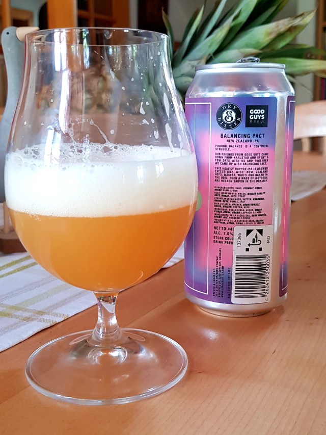 Skandinavien zählt zu den spannendsten Craft-Bierregionen der Welt. Kürzlich hatte ich einen Kollaborationssud von Dry & Bitter aus dem dänischen Gørløse und Good Guys Brew aus Karlstad in Schweden im Glas. Wer sich das Sortiment der beiden Marken ansieht, merkt sofort, dass bei der Zusammenarbeit geballte Kreativität aufeinandertrifft. So handelt es sich bei „Balancing Pact” um ein siebenprozentiges New Zealand IPA mit wirklich spannenden neuseeländischen Hopfensorten: Waimea, Waiiti, Rakau, Motueka und Nelson Sauvin.
