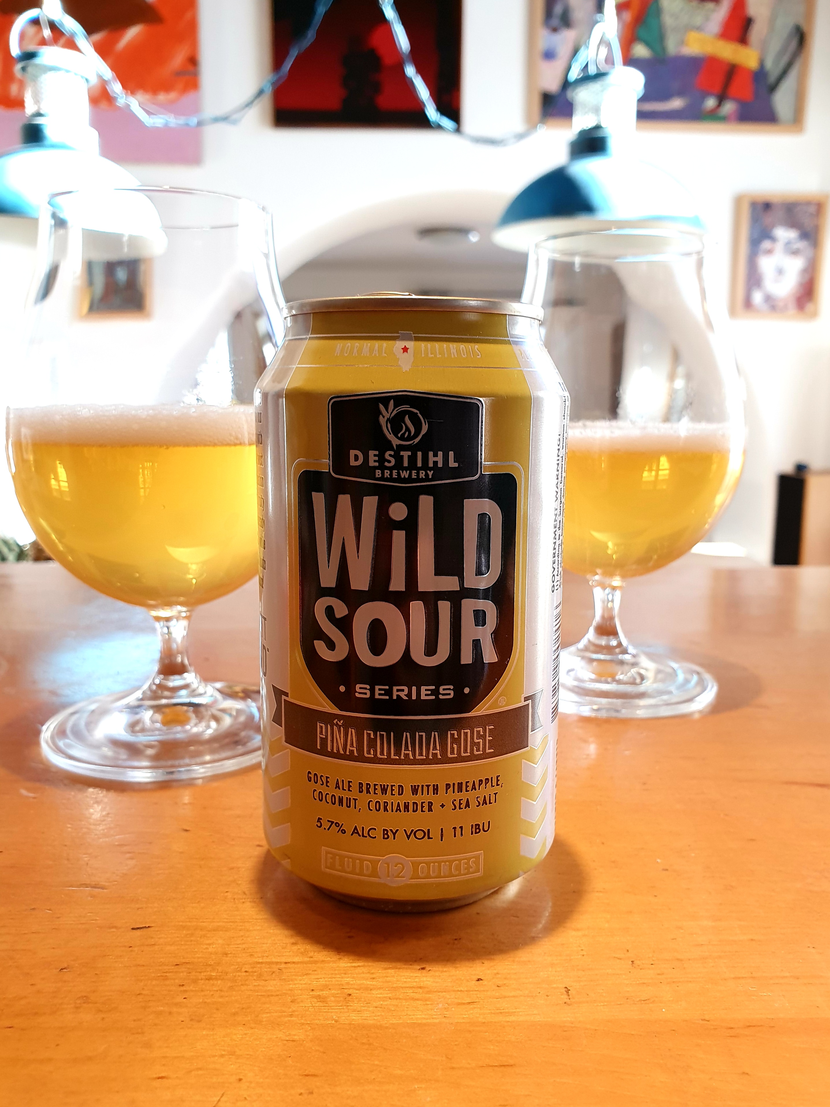 Sonnenschein und frühlingshafte Temperaturen: Was passt da besser als ein fruchtiges Sauerbier? Ich habe mir mal die „Pina Colada Gose“ von der Destihl Brewery aus Normal, Illinois, eingeschenkt. Dabei handelt es sich um ein Wild Sour, das neben Ananas und Kokosnuss auch mit Koriander sowie Meersalz gebraut ist. Diese goldgelbe Spezialität besitzt 5,7 Prozent Alkohol. Ganz kurz liegt ein weißer Schaum oben auf.