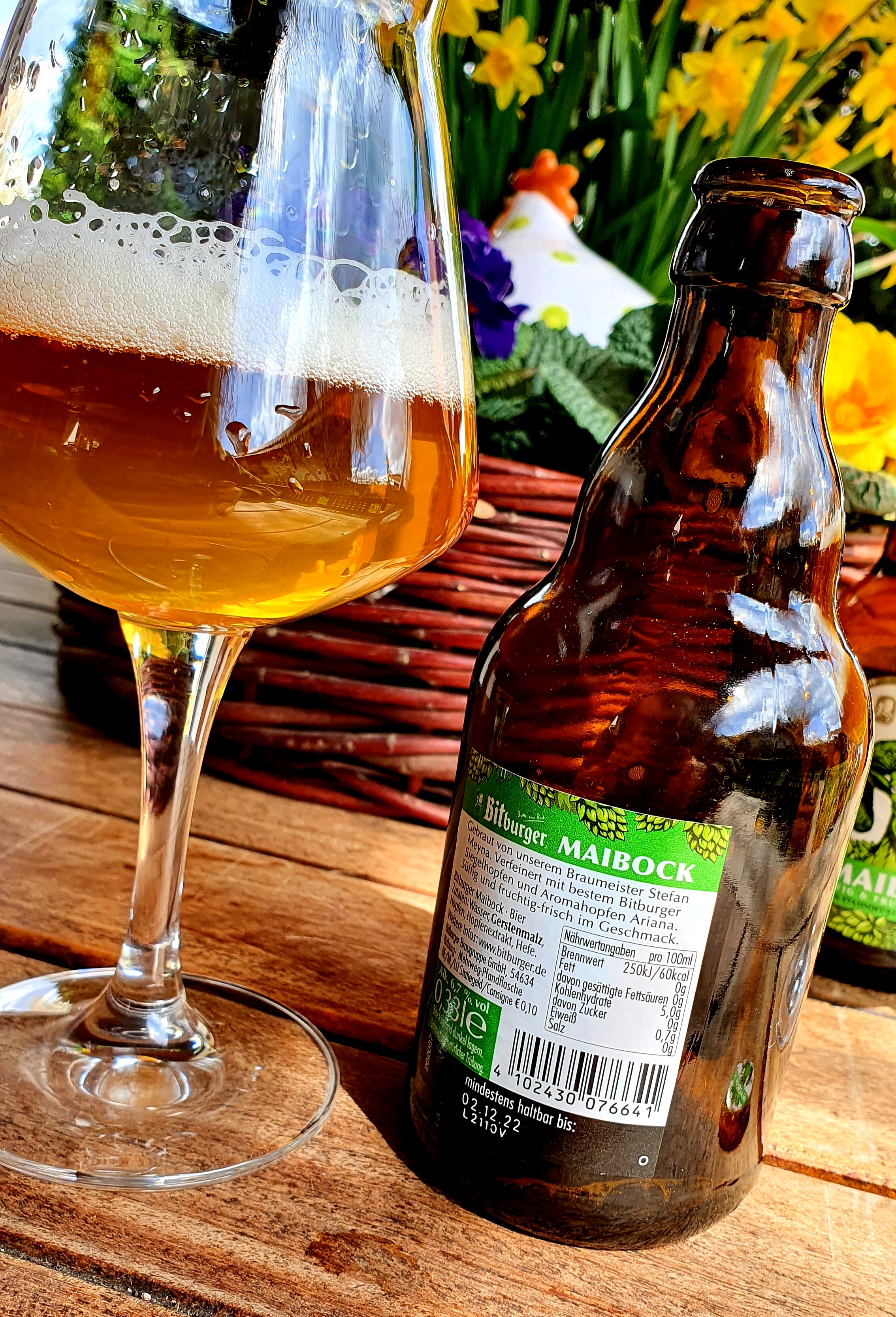 Eine der ersten Braustätten hierzulande, die schon im April mit einem Maibock starten, ist die Bitburger Brauerei aus der Eifel. Die renommierten Pils-Produzenten wagen sich schon seit einiger Zeit auch mal an andere limitierte Sude und beweisen, dass sie nicht nur auf den beliebtesten Bierstil der Nation festgefahren sind. So legt der Bitburger „Maibock“, der von Braumeister Stefan Meyna entwickelt und gebraut wird, stolze 6,7 Prozent Alkohol und eine Stammwürze von 16,2 Prozent vor. Gehopft ist das Starkbier mit Hallertauer und Bitburger Siegelhopfen sowie der Aromasorte Ariana.