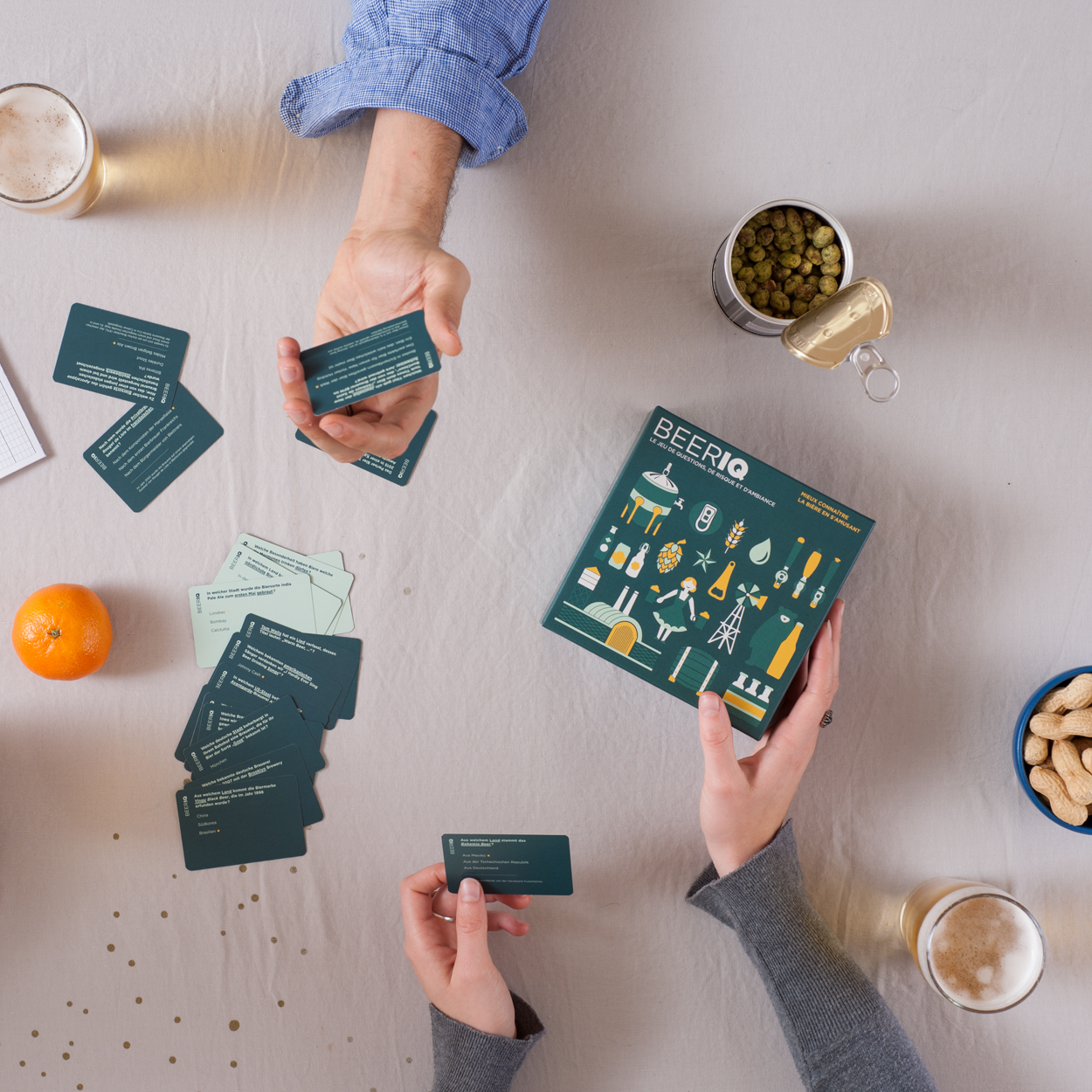 Auf welchem amerikanischen Brauerei-Logo kämpfen Bär und Löwe miteinander, welche Flaschenfarbe schützt das Bier am besten vor Sonnenstrahlen oder in welchem Land gibt es die meisten unabhängigen Brauereien? Mit 400 Multiple-Choice-Fragen auf kleinen Karten können Bierfans ihr Wissen testen und verbessern. Die Themen drehen sich rund ums Brauen: Es gibt Fragestellungen zu Braustätten, Zutaten aber auch zu Aromatik, Kulturen, Traditionen oder Festivals.