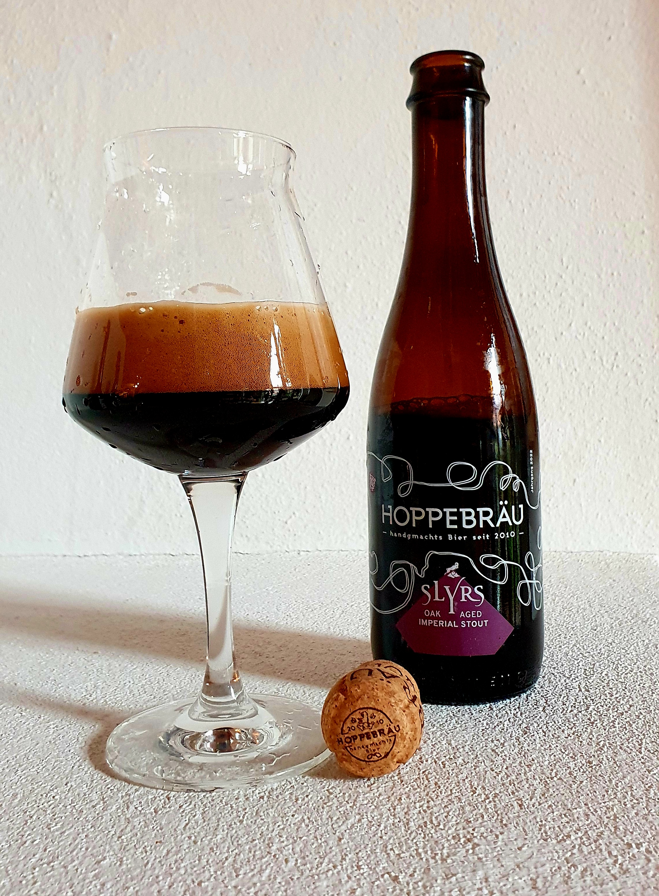 Einmal im Jahr legt Markus Hoppe von Hoppebräu aus dem bayerischen Waakirchen ein ganz besonderes Imperial Stout auf. Dieses reift jede Saison in einem anderen vorbelegten Fass der Whiskey-Brennerei Slyrs. Jetzt ist die neue Version rausgekommen. Sie reifte drei Monate im Tank, vier Monate in Rye Bourbon Whiskey-Fässern und dann nochmal rund sechs Wochen im Kessel, bis sie in die schicken Flaschen gefüllt wurde.