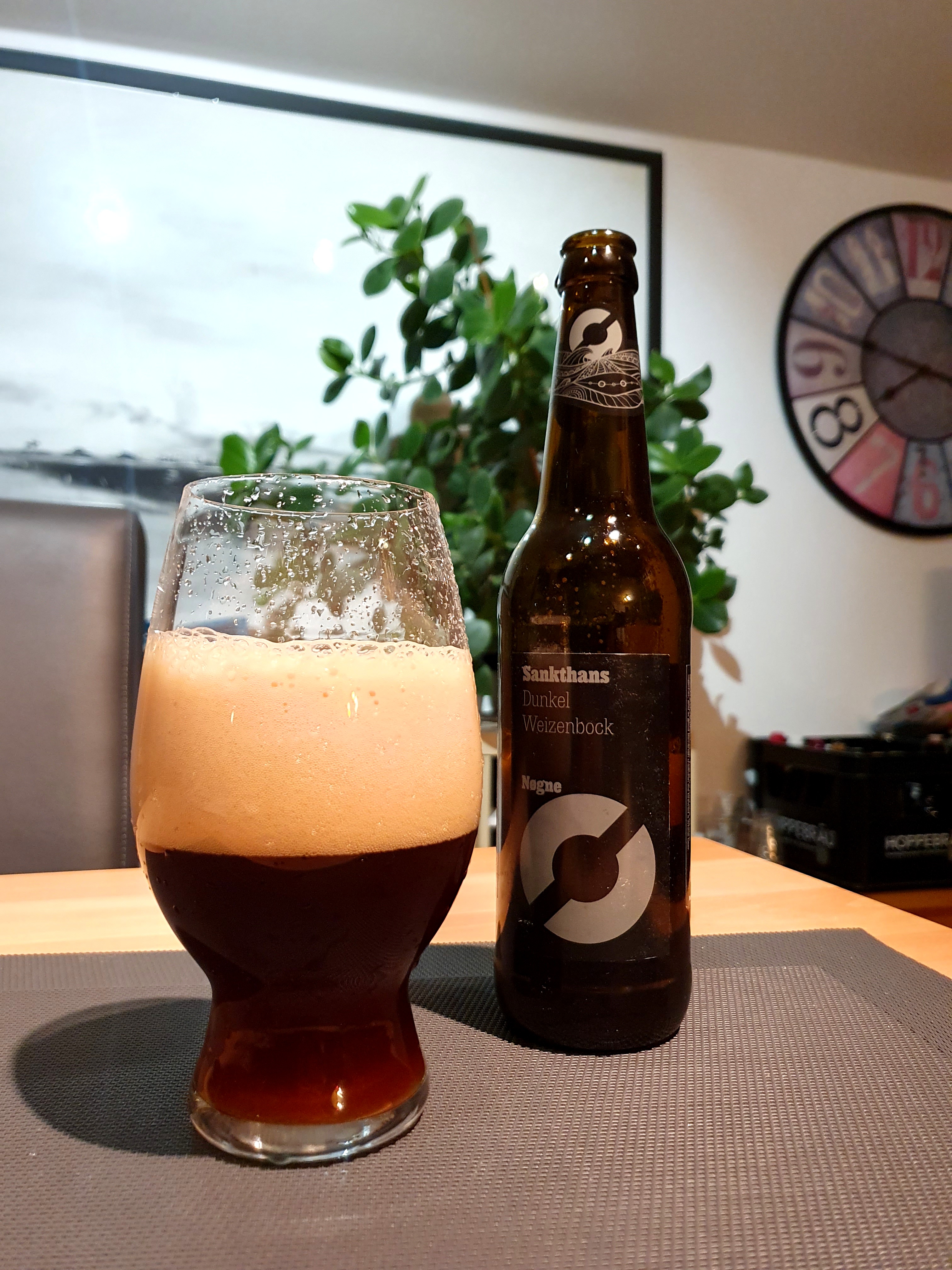 Nun ist der Bock mit dem Namen „Sankthans“ auf dem Markt – allerdings nur in Norwegen als limitierte Edition. Durch meine Kontakte konnte ich mir ein paar Flaschen ergattern. Die Vorfreude war groß und das Bier jetzt in meinem Glas. Es zeigt sich in einem naturtrüben Kastanienbraun, getoppt von einem beigefarbenen, cremigen und stabilen Schaum. Die Nase wird betört von einem Duft aus Karamell, reifer Banane, sowie nussigen und leicht röstigen Anklängen. Schon über die Lippen fließt „Sankthans“ cremig-vollmundig, bis sich ein vielfältiges Geschmacksspiel ausbreitet. Der Weizenbock präsentiert süßliche Aromen von reifer Banane, Karamell, Toffee und Schokolade. Hinzu kommen rote Beeren wie Kirsche und Preiselbeeren sowie ein Hauch von gelben Steinfrüchten. Im Finish verabschiedet sich das Bier unerwartet trocken und herb mit 30 Bittereinheiten. Das macht gleich Lust auf den nächsten Schluck.
