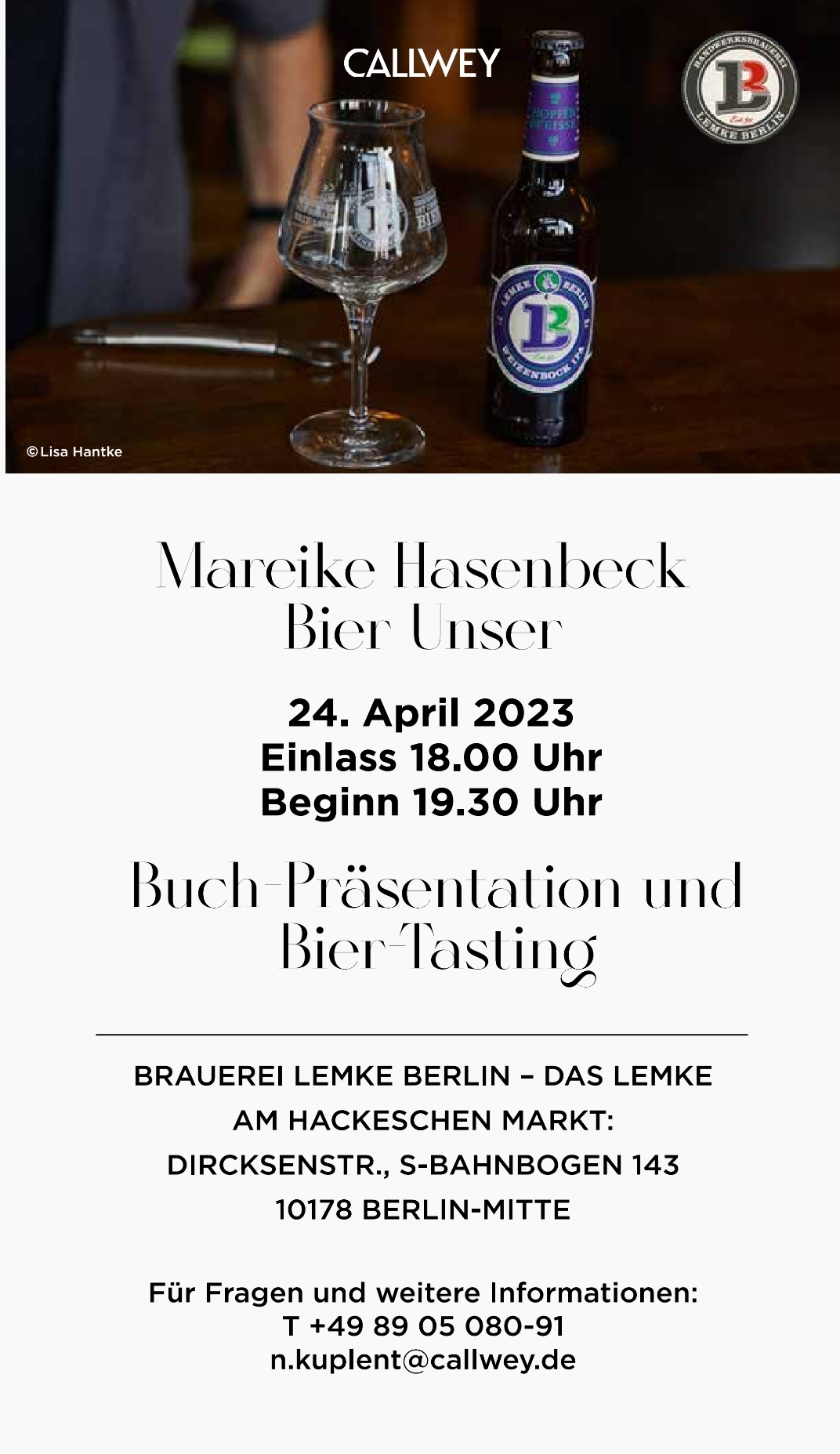 Am Montag, den 24. April, bin ich bei der Brauerei Lemke in Berlin, um mein Buch „Bier Unser“ vorzustellen, mit Oli Lemke zu quatschen und mit euch Bier zu trinken – wenn ihr wollt.