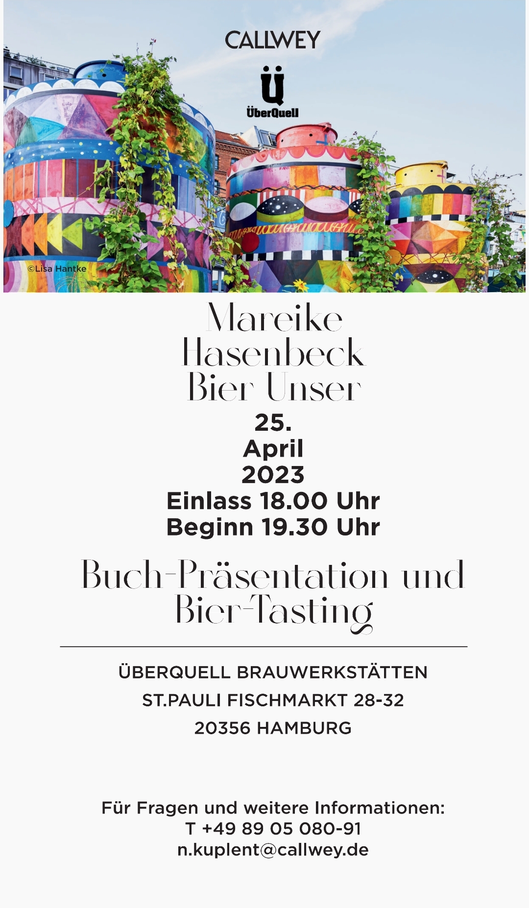 Am Dienstag, den 25. April, geht’s weiter in Berlin bei ÜberQuell. Dort stelle ich euch mein Buch vor, spreche mit Axel Ohm über die Bierszene und es gibt tolle Biere von FrauGruber, Schneeeule, Orca Brau etc. zum Verkosten. Eintritt frei!