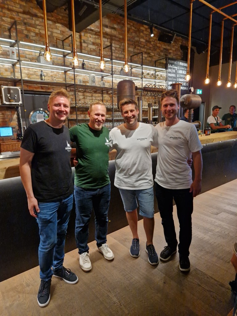 Durch den Abend leiteten Basti und Sebi vom Giesinger Bräu sowie Franz und Sebastian von der Münchner Käse Manufaktur. Beide Unternehmen verbindet, dass sie ihren Traum durch diverse Crowdfunding-Aktion verwirklichen konnten. Zudem spielt ein Standort in der bayerischen Hauptstadt für die Macher eine bedeutende Rolle. Giesinger Bräu hat es durch den eigenen Brunnen bereits geschafft. Doch auch die Käsemanufaktur eröffnet gegen Ende des Jahres ihre eigene Produktionsstätte in der Prinzregentenstraße und gilt dann als einzige ihrer Art in München. Aktuell produzieren die Jungunternehmer noch in kleinen Mengen in Landsberg, sodass für das Tasting auch drei Sorten von geschätzten Käsekollegen aus der Schweiz mit ins Spiel kamen.