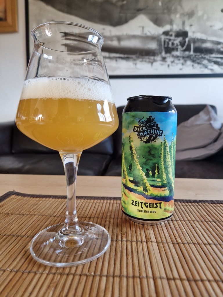 Schon auf der BrauBeviale im November in Nürnberg konnte ich das Bier probieren. Da ich es dort am HVG-Stand schon spannend fand, wollte ich es aber auch zuhause noch mal ganz in Ruhe verkosten. Vor ein paar Tagen hatte ich das „Zeitgeist“ nun endlich noch mal im Glas, wo es sich in einem ansprechenden Goldgelb und mit einem feinporigen, elfenbeinfarbenen Schaum zeigt. Das Bier duftet nach Stachelbeeren, Grapefruit, weißen Trauben, Mirabelle und Mandarine. Über die Lippen fließt es mit einer sanften Süße. Auf der Zunge breitet sich das NEIPA vollmundig aus und präsentiert ein Aromaspiel aus Grapefruit, Mandarine, Orange, Mirabelle, Maracuja, Stachelbeere sowie einem Hauch Banane und einem würzigen Anklang mit einer gewissen Pfeffrigkeit. Im Nachtrunk verabschiedet es sich aromatisch und mit einer angenehmen Bittere von 32 IBU.