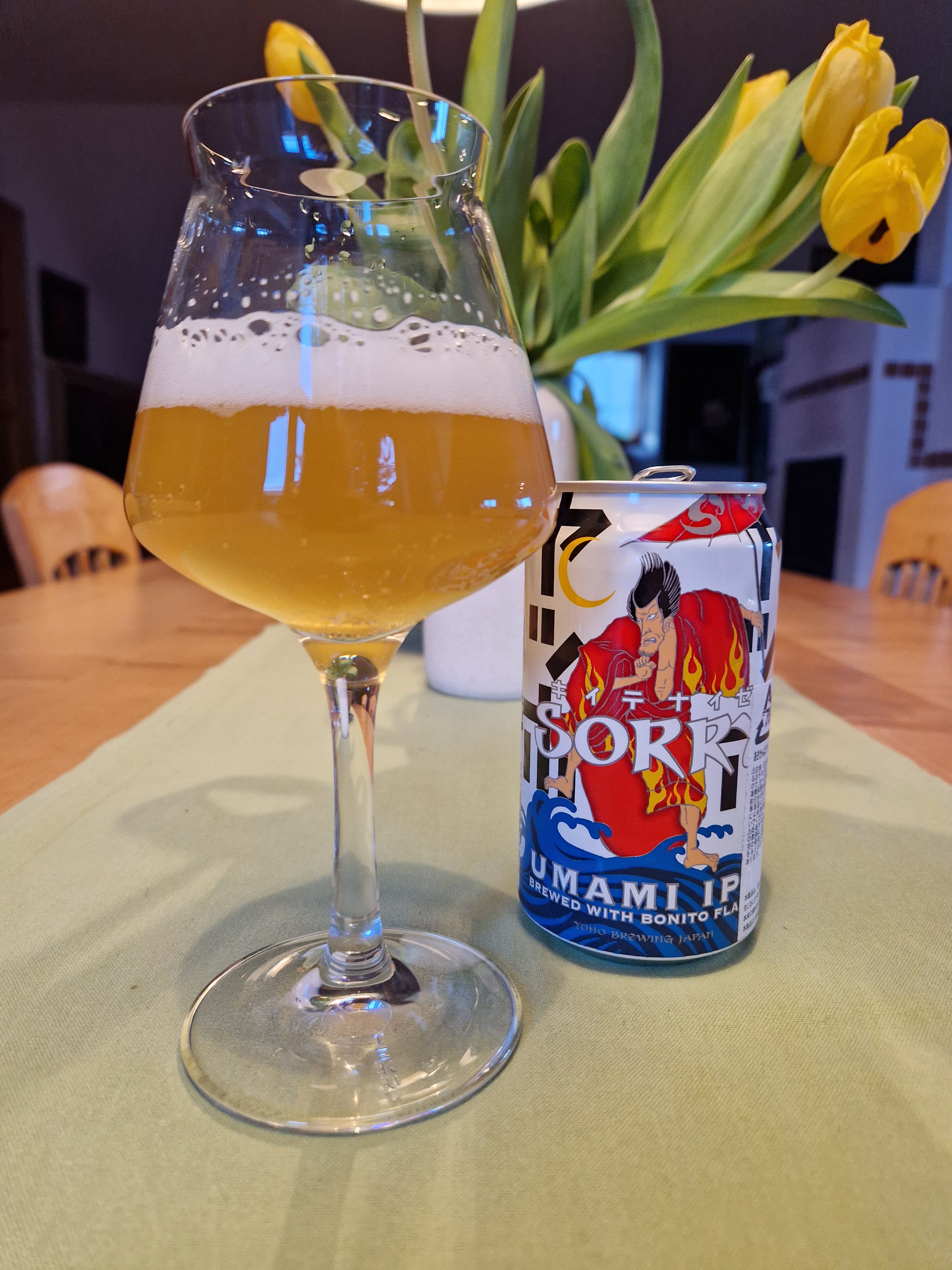 Ok, das ist schon mal eine Ansage. Nun der Clou: das 6,5-prozentige Bier ist mit Bonito-Flocken gebraut. Der getrocknete Thunfisch gehört in der japanischen Küche zum Alltag und gilt als natürlicher Geschmacksverstärker. Aber im Bier? Mal schauen! In der Optik zeigt sich das naturtrübe IPA in einem attraktiven Goldton, getoppt ist es von einem feinporigen, schneeweißen Schaum. In die Nase strömen erst mal angenehme und frische Noten von Zitrusfrüchten und gelbem Steinobst. Im Hintergrund lässt sich etwas Würziges erahnen. Auf der Zunge breitet sich das Bier spritzig und vollmundig aus, bis sich im Geschmack auch die intensiven fruchtigen Hopfennoten zeigen, die im Duft bereits angekündigt wurden. Erst im Finish, das sich bei 40 Bittereinheiten kräftig herb präsentiert, kommen die bereits erwarteten Umami-Noten zum Vorschein, die eine interessante Würze mit sich bringen.