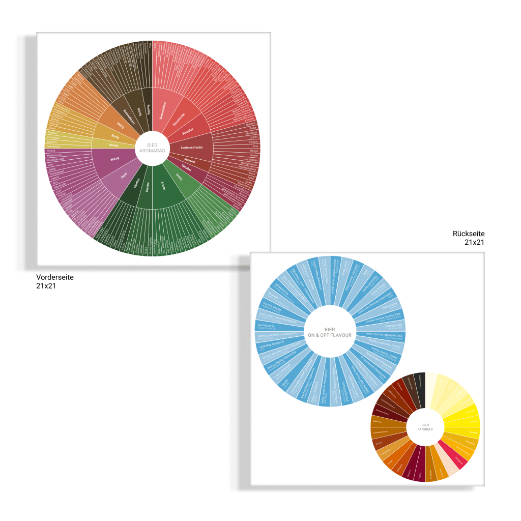 Maximilian Marner und ich haben das Bier-Aromarad sorgfältig gestaltet, um eine breite Palette von Bieraromen abzudecken – von fruchtig und blumig bis hin zu würzig und holzig. Egal, ob du ein erfahrener Bierenthusiast, Biersommelier oder Novize bist: Unser Aromarad mit inkludiertem Farbrad hilft dir, die feinen Unterschiede zwischen verschiedenen Bieren besser zu erkennen und zu betiteln.