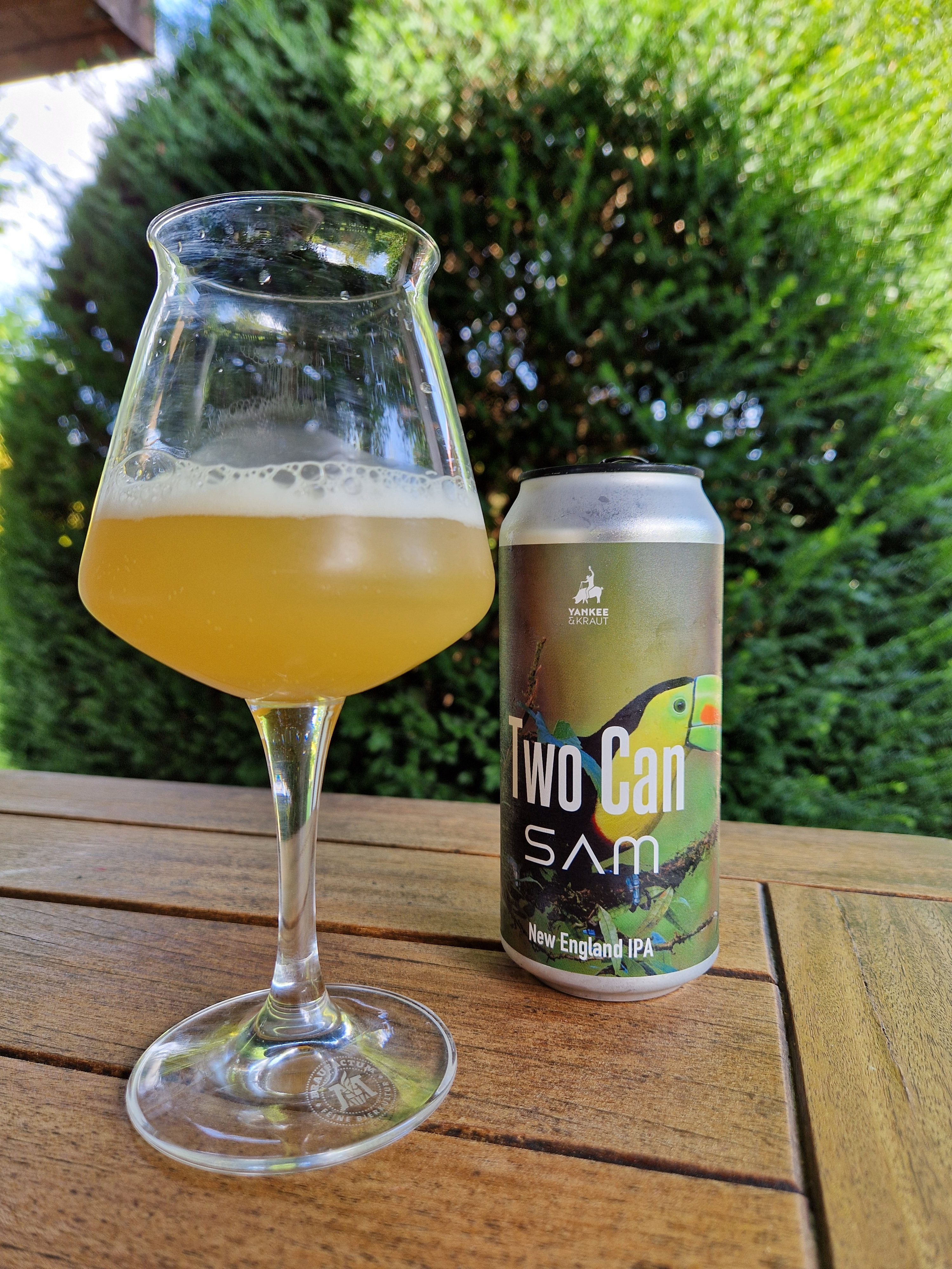 Wer fruchtig-saftige New England IPAs (NEIPA) liebt, der kommt an Yankee & Kraut aus Ingolstadt nicht vorbei. Mit „Two Can Sam“ hat Chef und Braumeister Bryan jetzt wieder ein Bier für echte Hopfen-Freaks vorgelegt. In das siebenprozentige NEIPA stopfte der Yankee jede Menge Mosaic Cryo und Sabro Cryo.