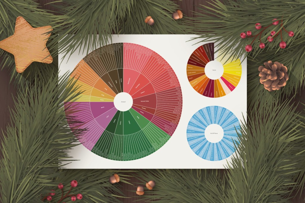 Als echtes Highlight unter dem Tannenbaum macht sich das Bier-Aromarad. Maximilian Marner und ich haben wochenlang an der neuen Version getüftelt. Und wir finden: sie kann sich definitiv sehen lassen. Das Bier-Aromarad präsentiert sich als perfekter Begleiter für alle Bierliebhaber und -kenner da draußen, die noch tiefer in die faszinierende Vielfalt der Bieraromen eintauchen wollen. Unser Bier-Aromarad ist sorgfältig gestaltet, um eine breite Palette von Bieraromen abzudecken – von fruchtig und blumig bis hin zu würzig und holzig. Inkludiert sind zudem Farb- und On/Off-Flavours-Räder.